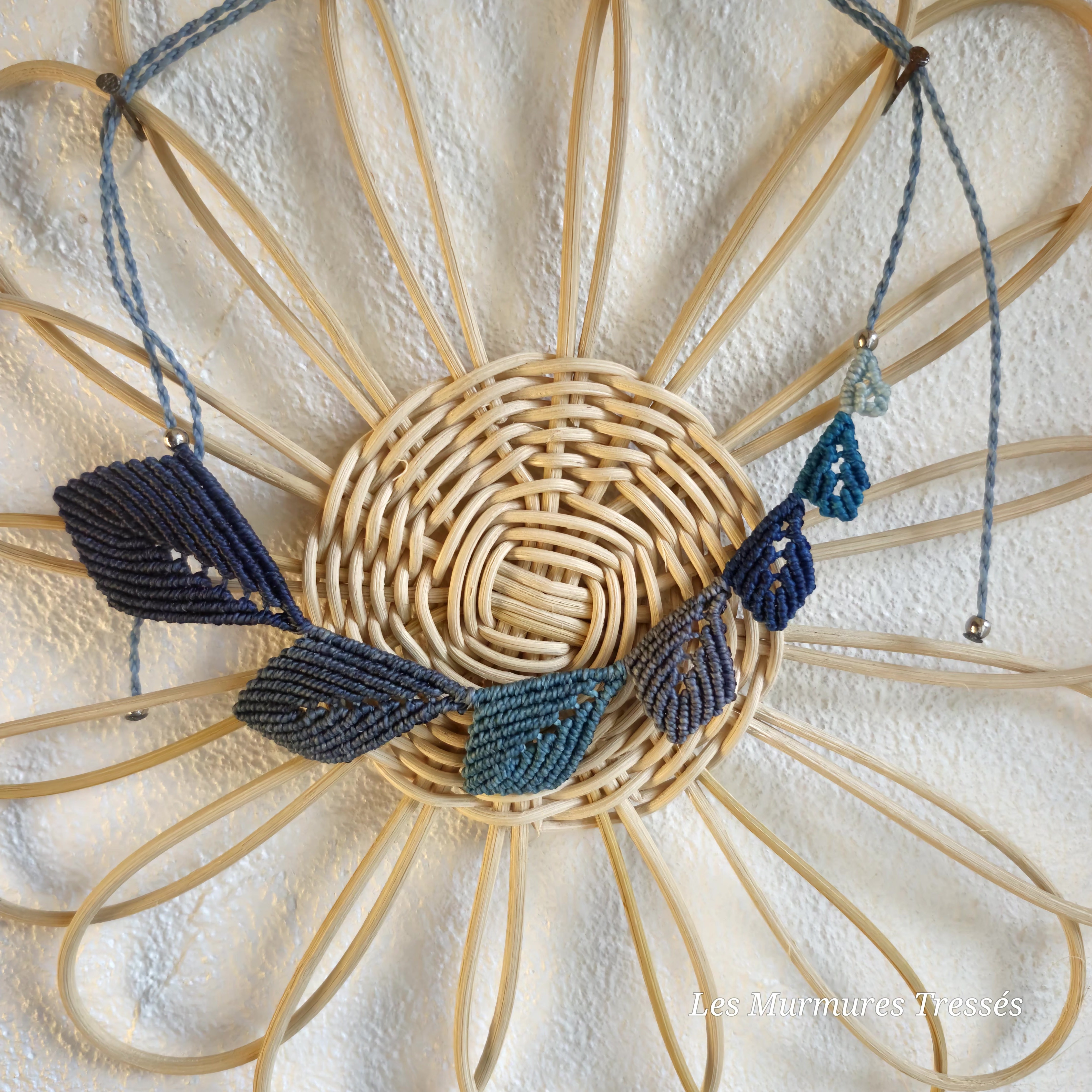 Les feuilles tissées en camaïeu de bleus évoquent les rivières tranquilles et la légèreté des jours d’été.