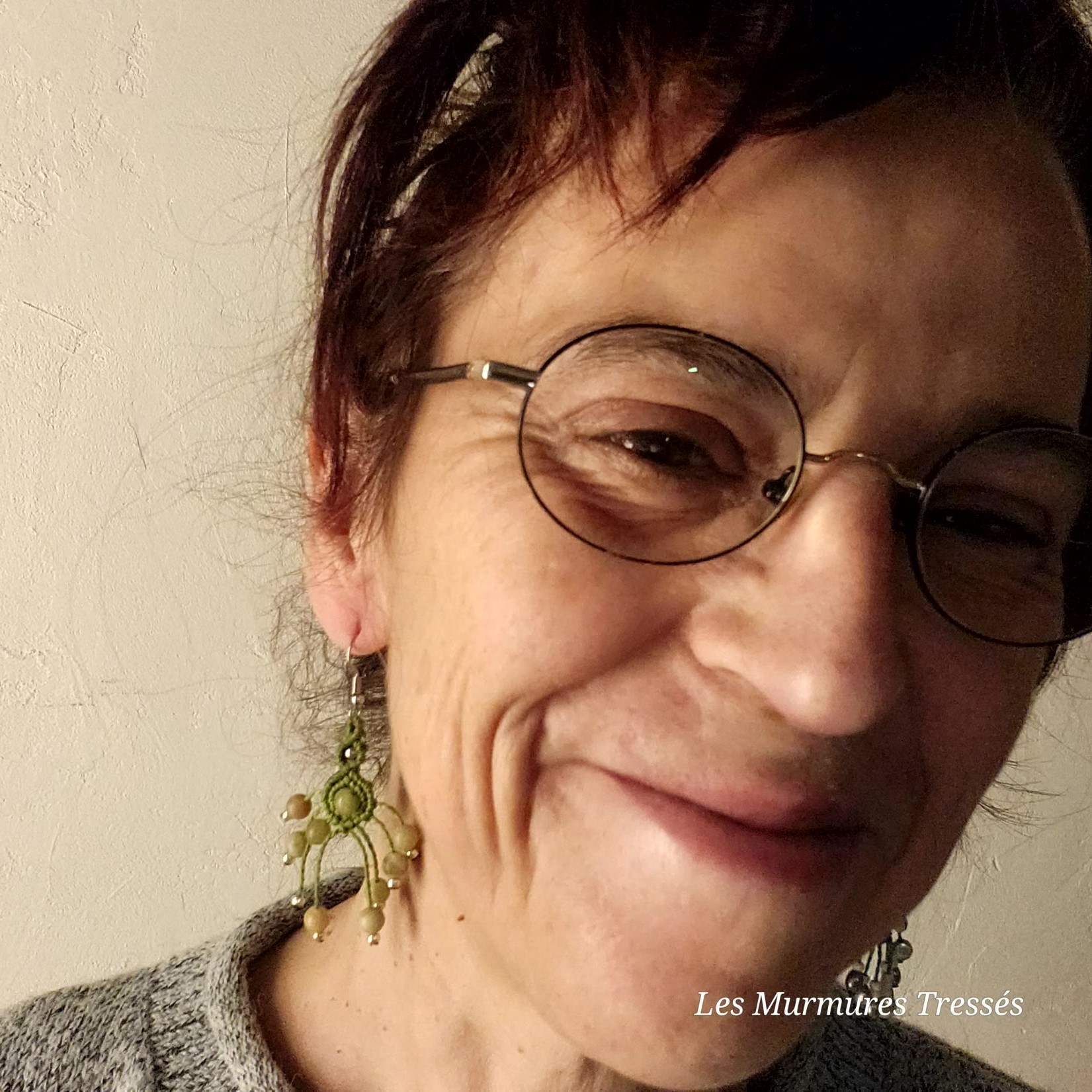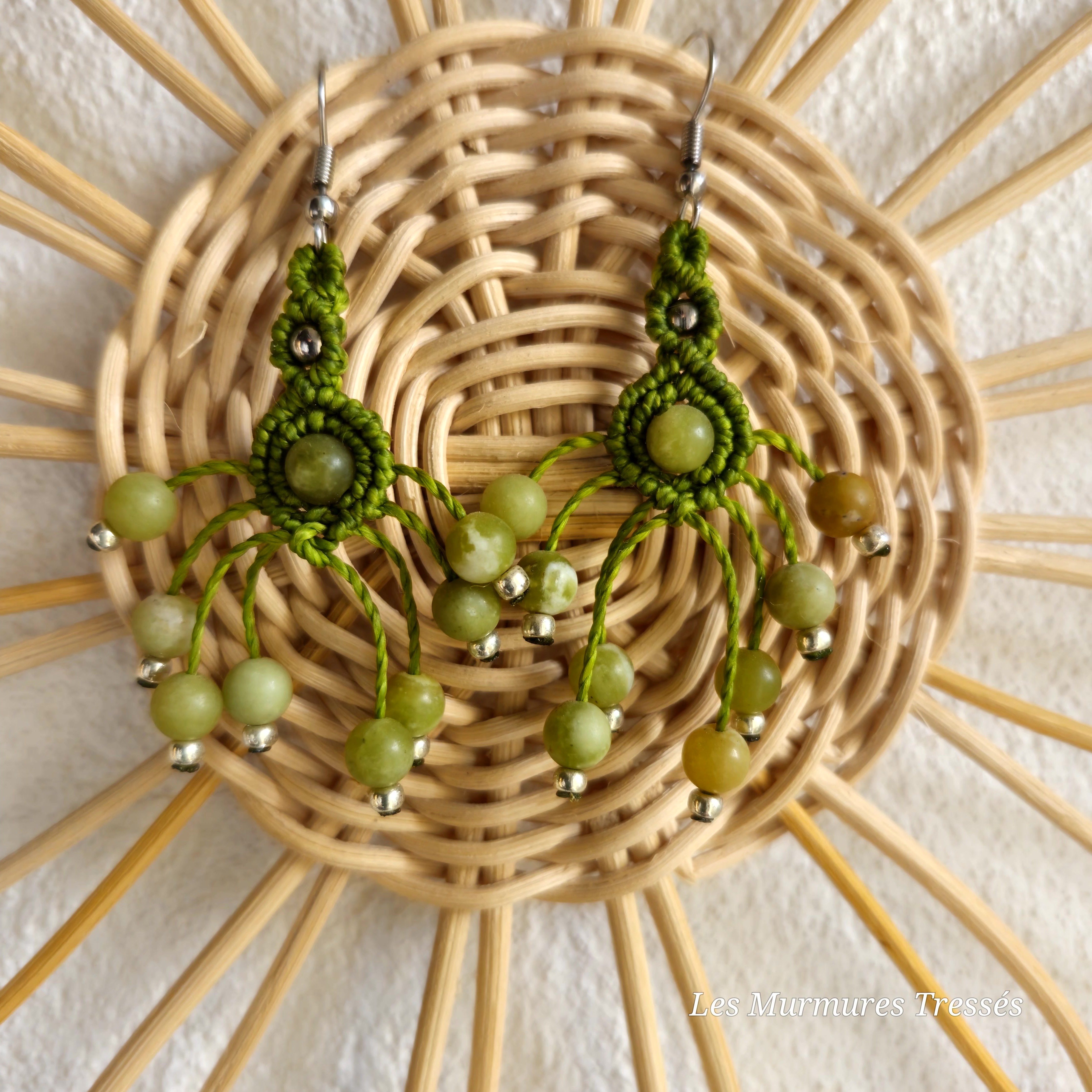 Fils verts (1 mm), perles de serpentine et petites argentées.