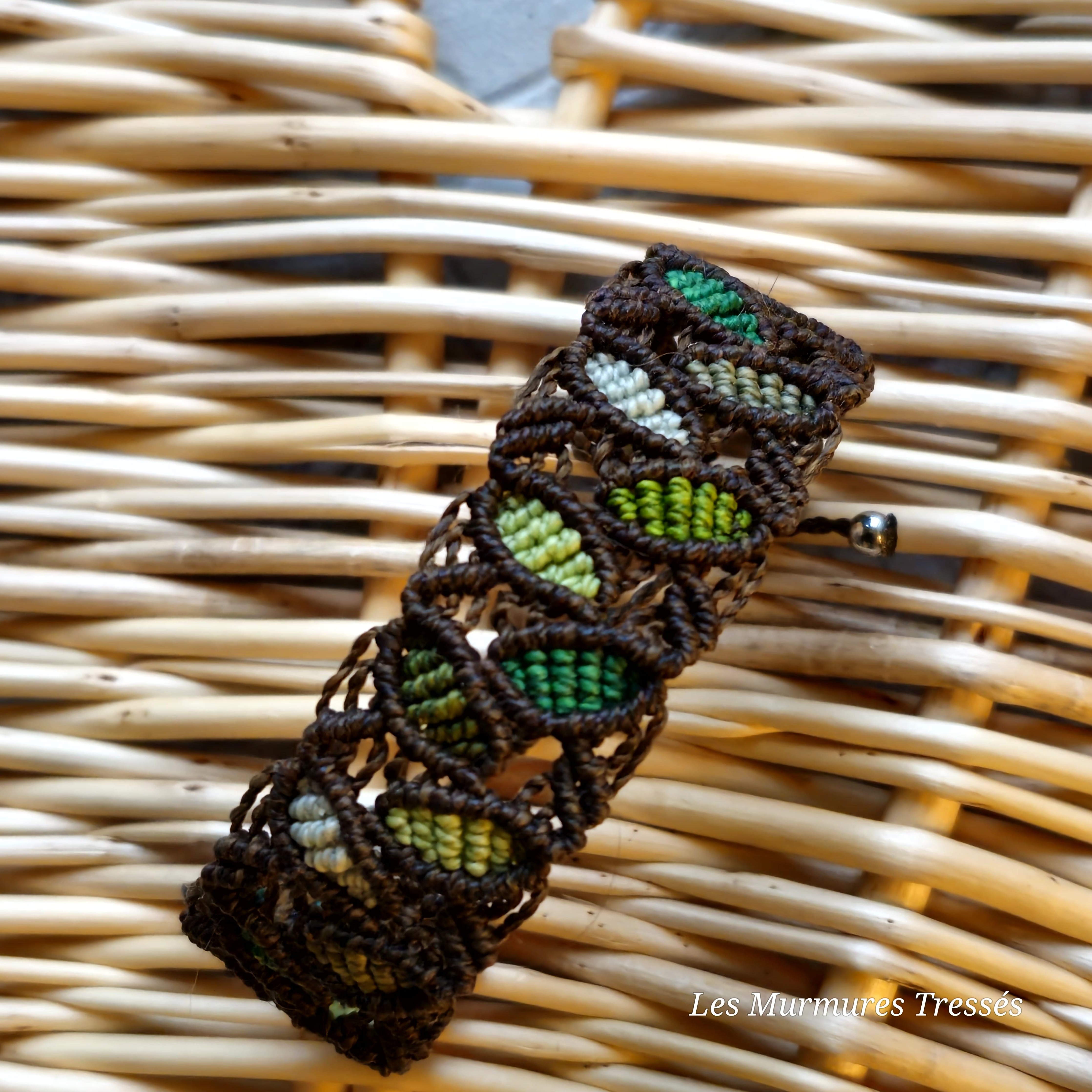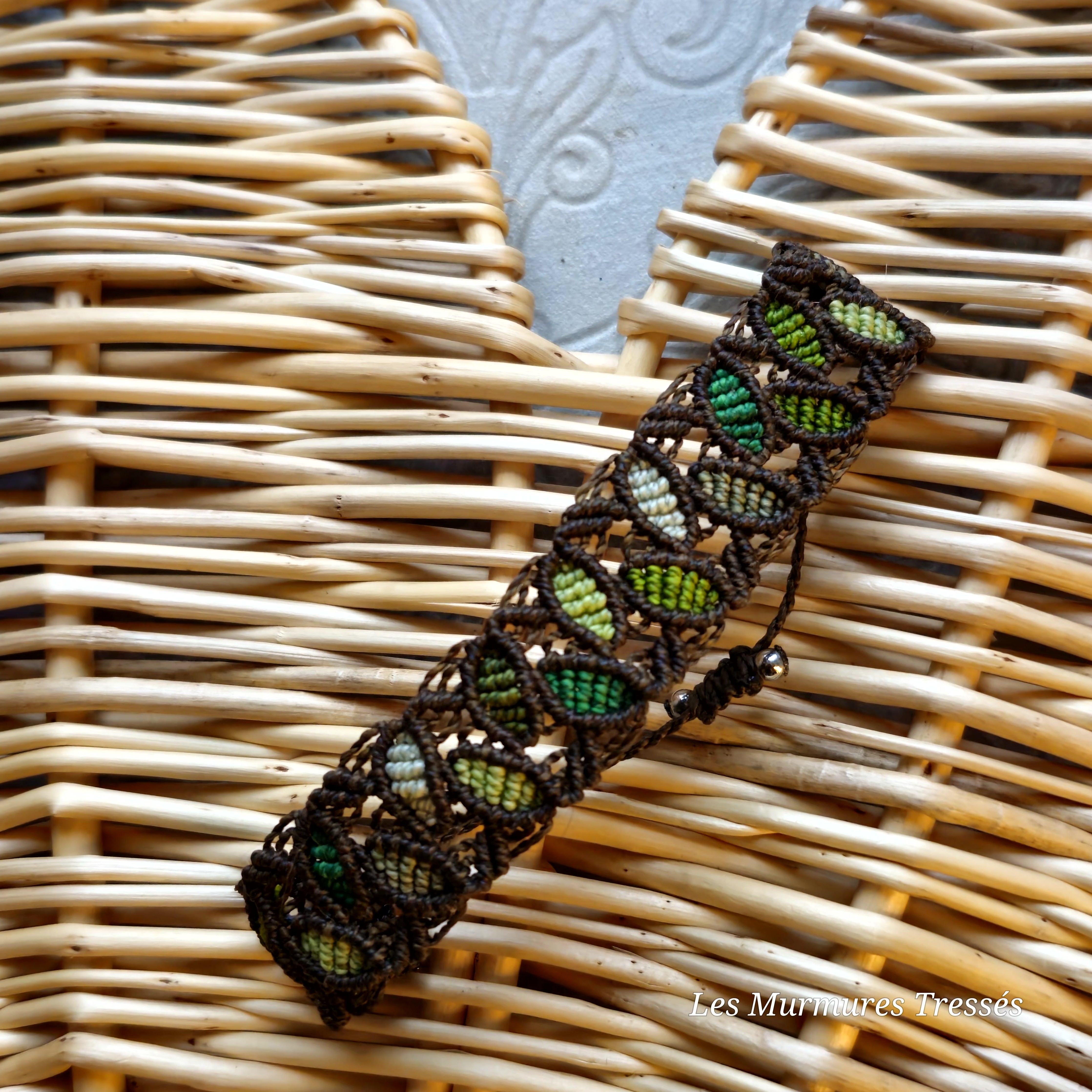 Ce bracelet semble murmurer le souffle de la forêt, entre mousse et feuillage frais.