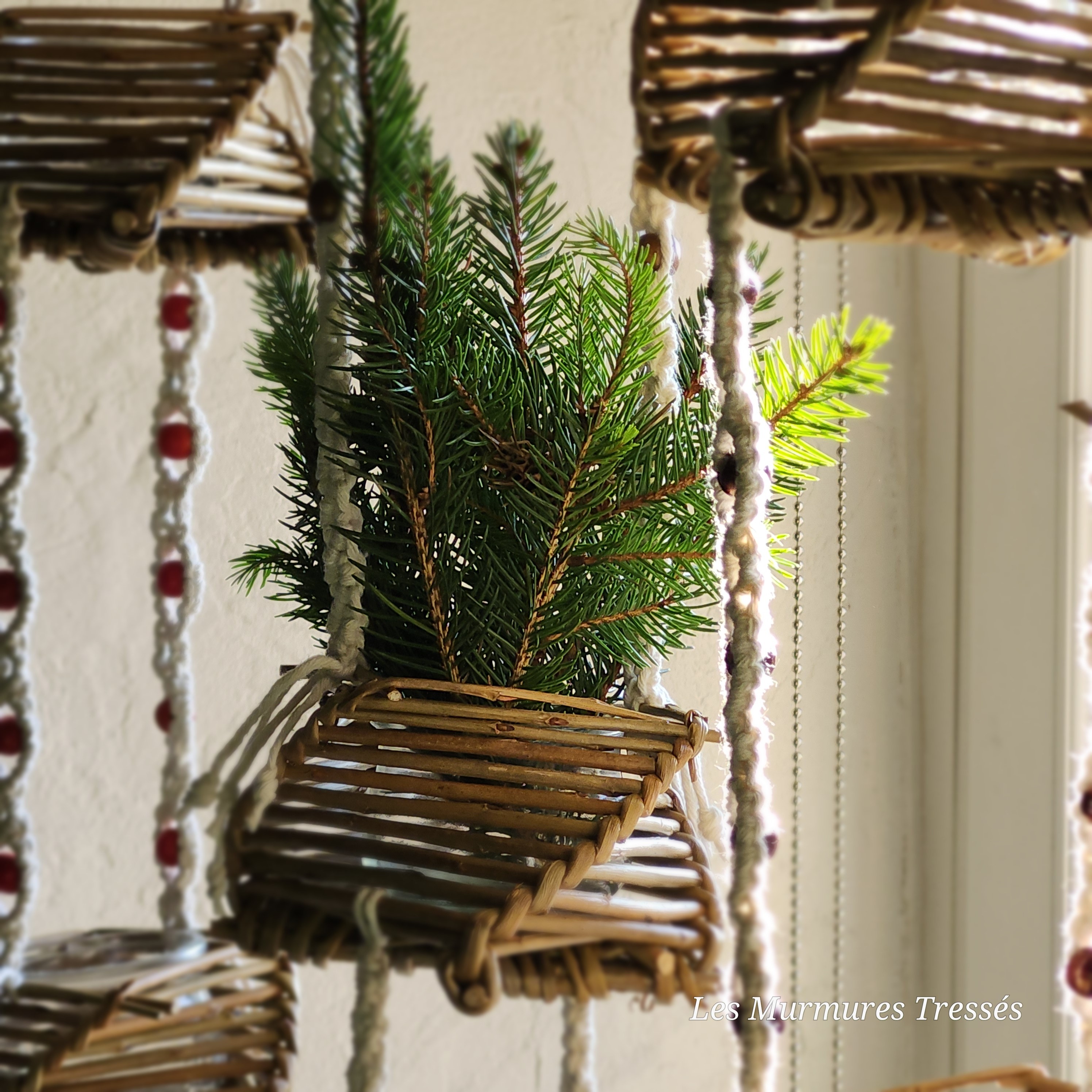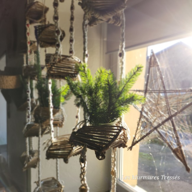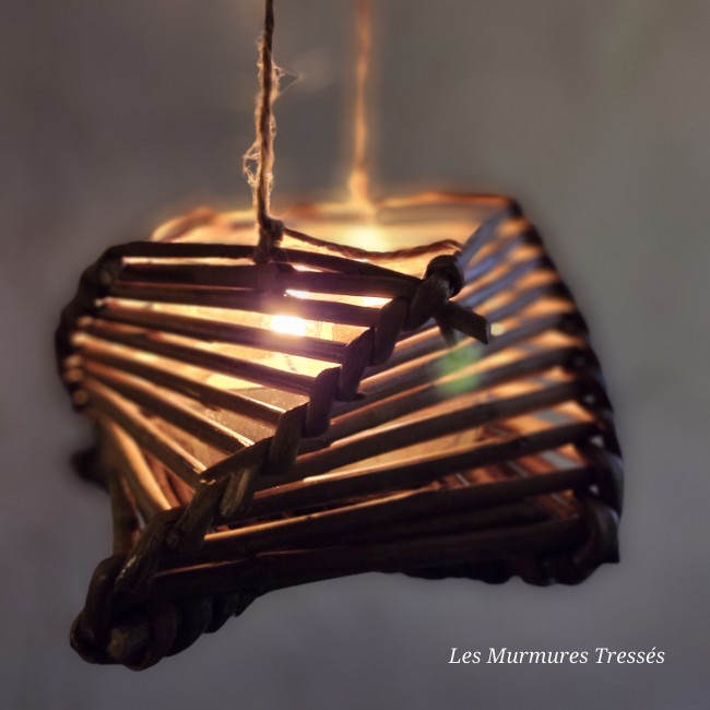 🌿Matériaux : Osier naturel, corde de coton, perles de bois, verre de récupération.