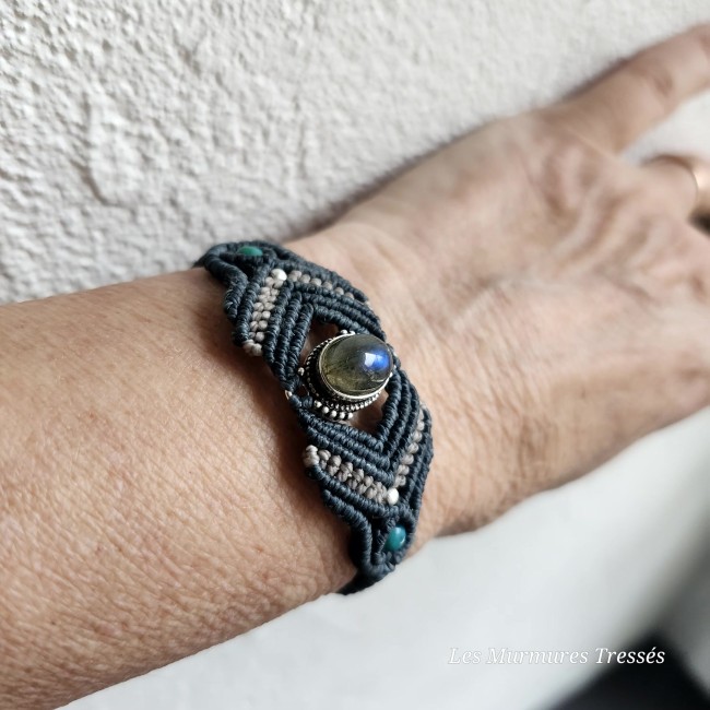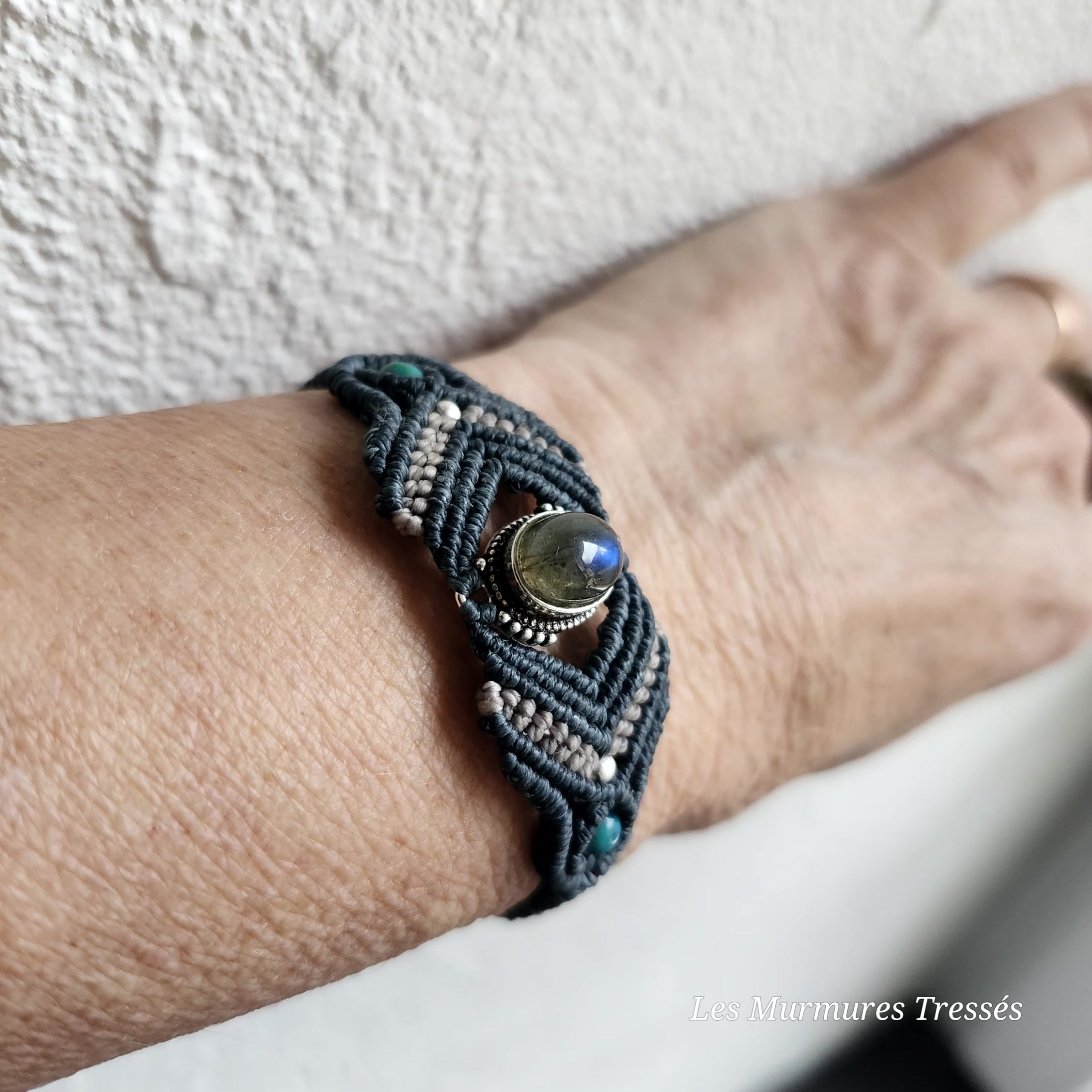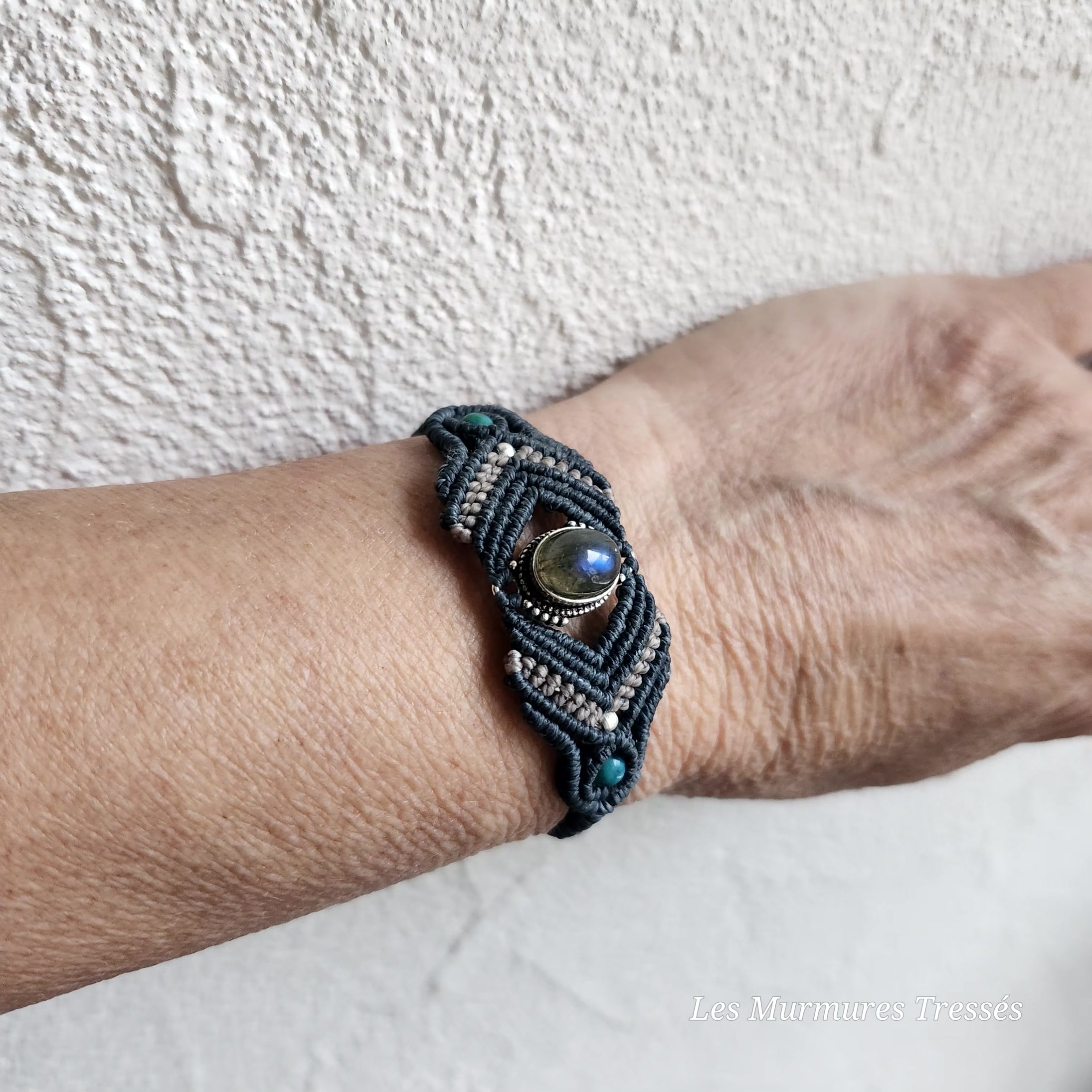đ« Atelier : Bracelet “Lueur Boréale” connecteur pierre sertie et perles de pierre au choix