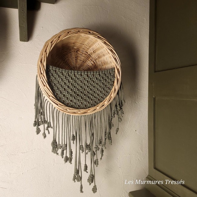Corbeille tressée en osier – avec filet en macramé vert saugeDéco & Maison