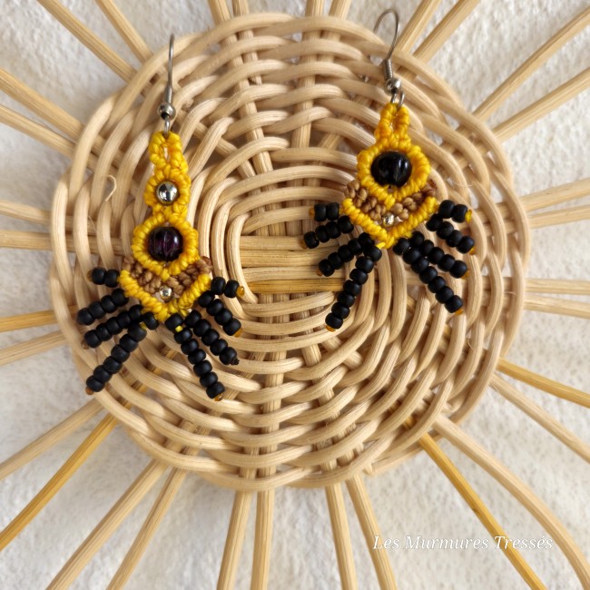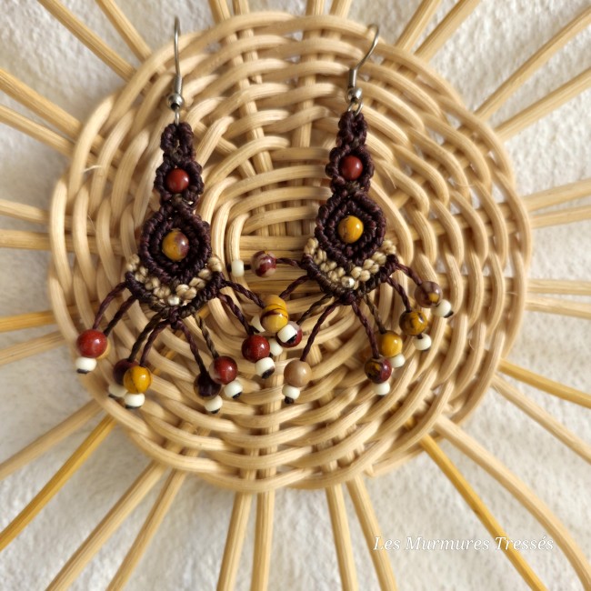 Chaque paire de boucles d’oreilles en micro-macramé fait main est une petite histoire de finesse et de délicatesse.