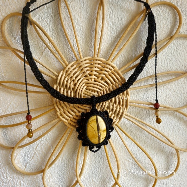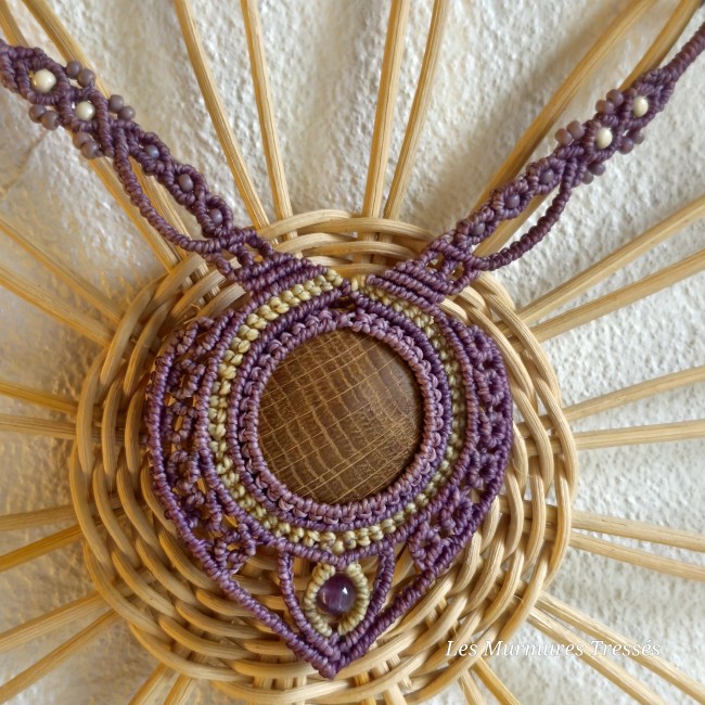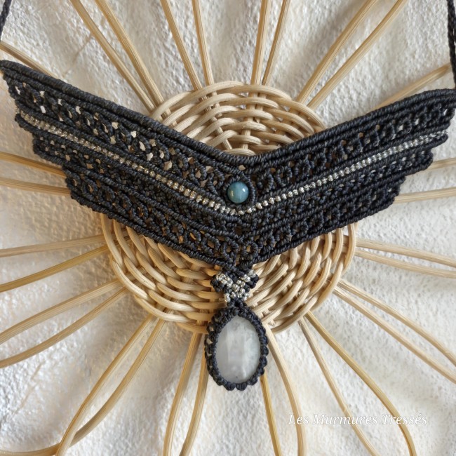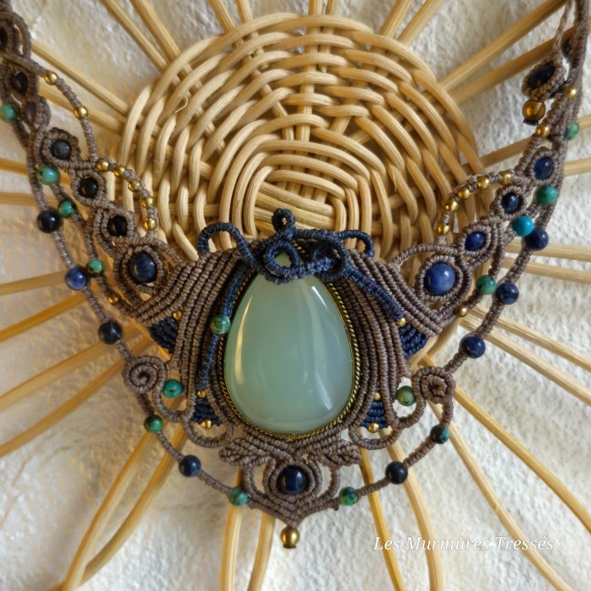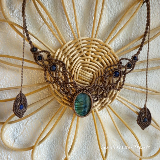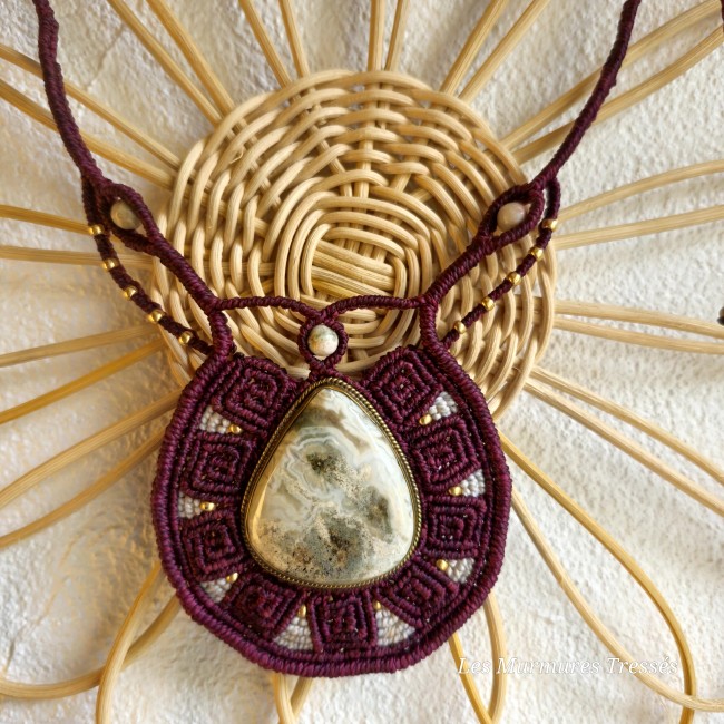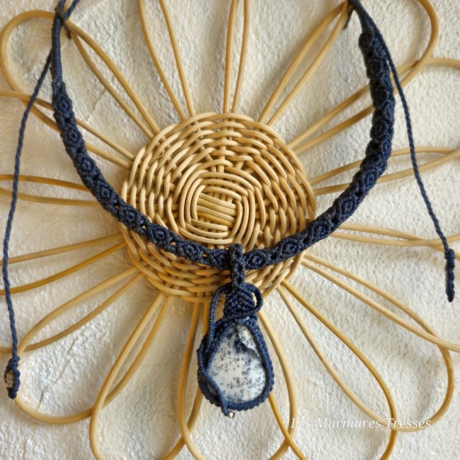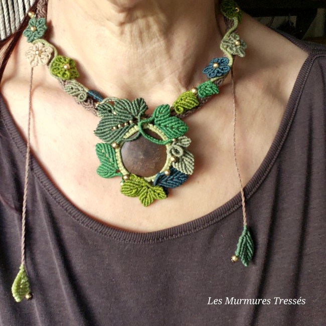 Chaque collier en micro-macramé fait main est une histoire de patience et de poésie.